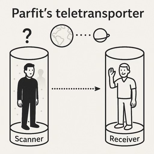 Brief description: Imagine a machine (a "teletransporter") that scans your body completely, destroys your original self, and instantaneously recreates an exact replica—complete with your memories, personality, and consciousness—on another planet.